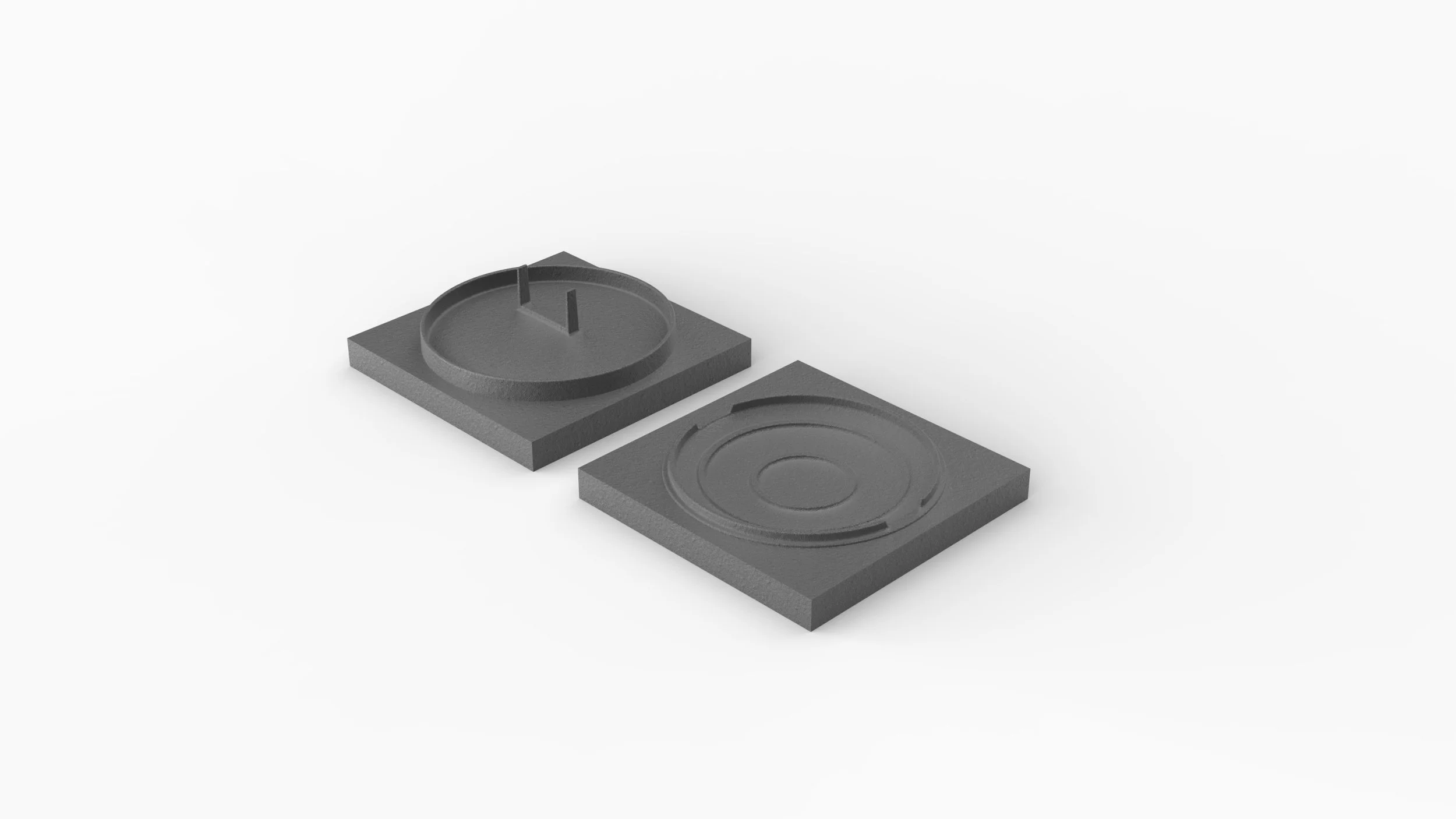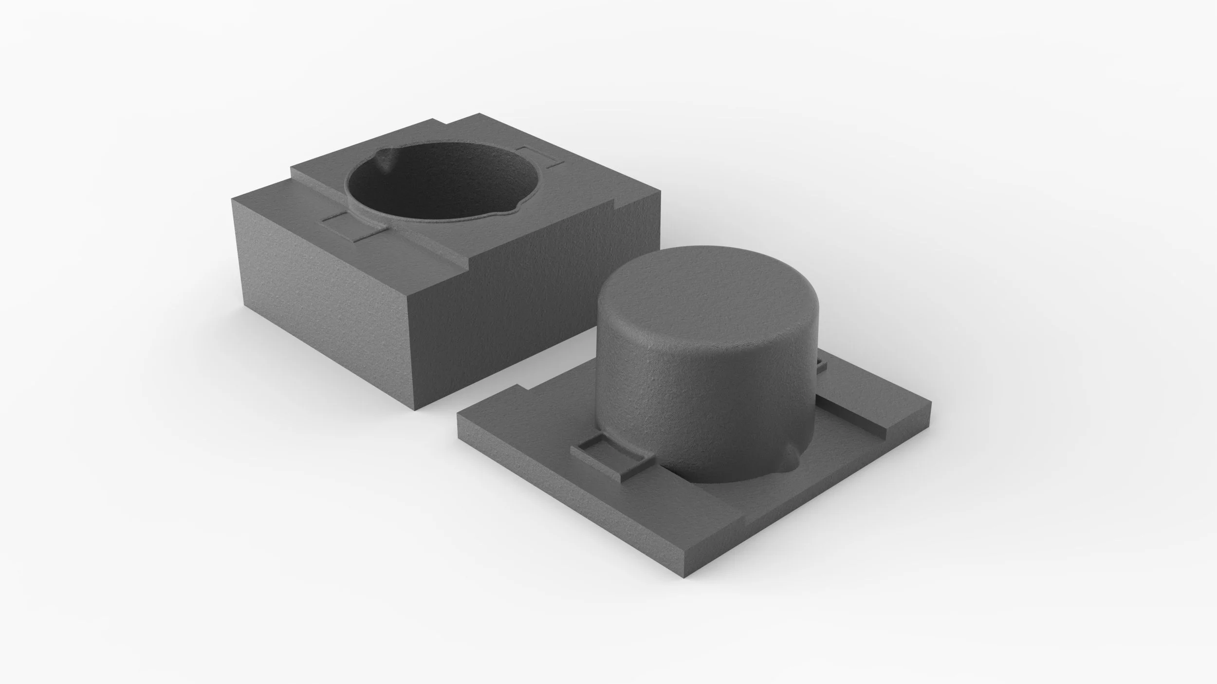 Cast Iron molds to scale. Each has an accurate 1.5° draft angle.